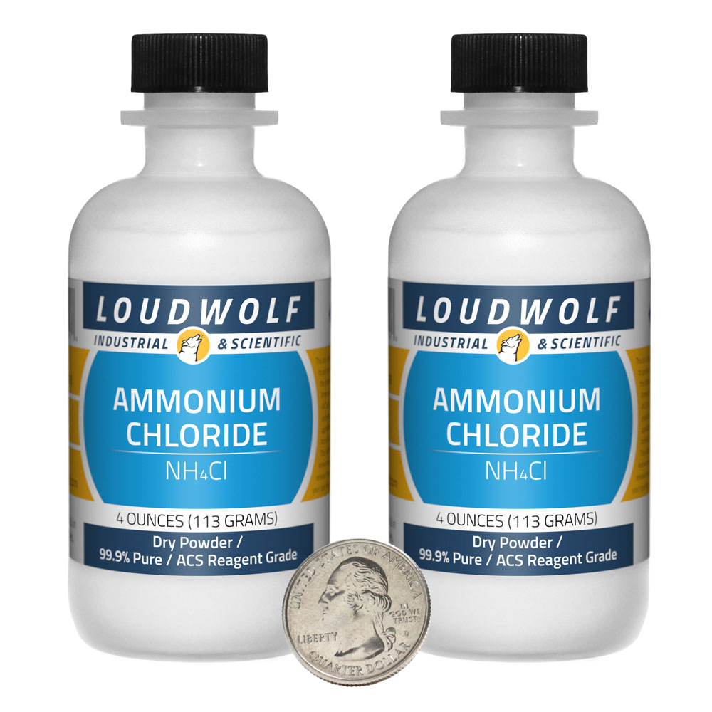 The item for sale is 8 Ounces (227 Grams) of Ammonium Chloride (NH4Cl). You get 2 bottles each containing 4 ounces of product. Ammonium Chloride is also known as Sal Ammoniac. |