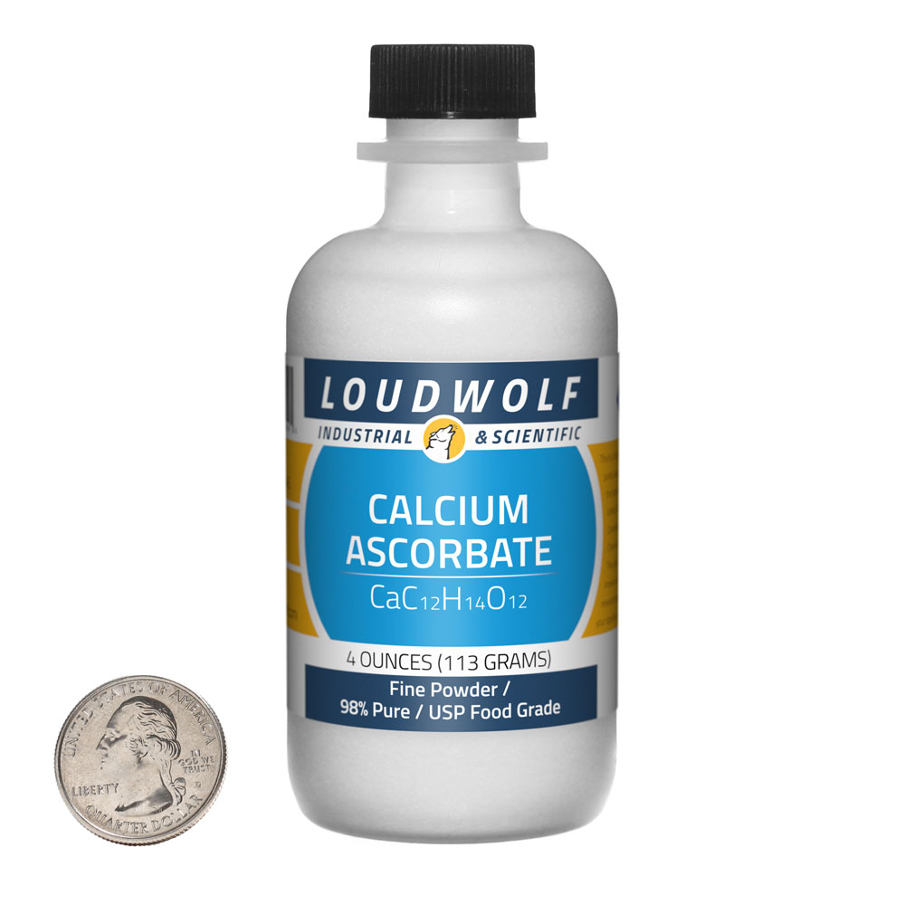 The item for sale is 4 Ounces (113 Grams) of Calcium Ascorbate (CaC12H14O12). Calcium Ascorbate is the calcium salt of Ascorbic Acid (Vitamin C). It contains 10% Calcium by mass. As such, it is an excellent source of both Calcium and Vitamin C. For Ascorbic Acid, check out our other listings. |