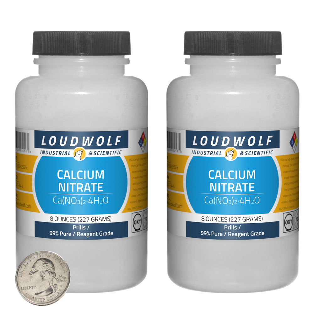 The item for sale is 1 Lb (16 Ounces) of Calcium Nitrate (Ca(NO3)2·4H2O). You get 2 bottles each containing 8 ounces of product. Calcium Nitrate has many uses. The total Nitrogen content is 15.50% (1% Ammonical and 14.50% Nitrate). The total Calcium content is 19%.