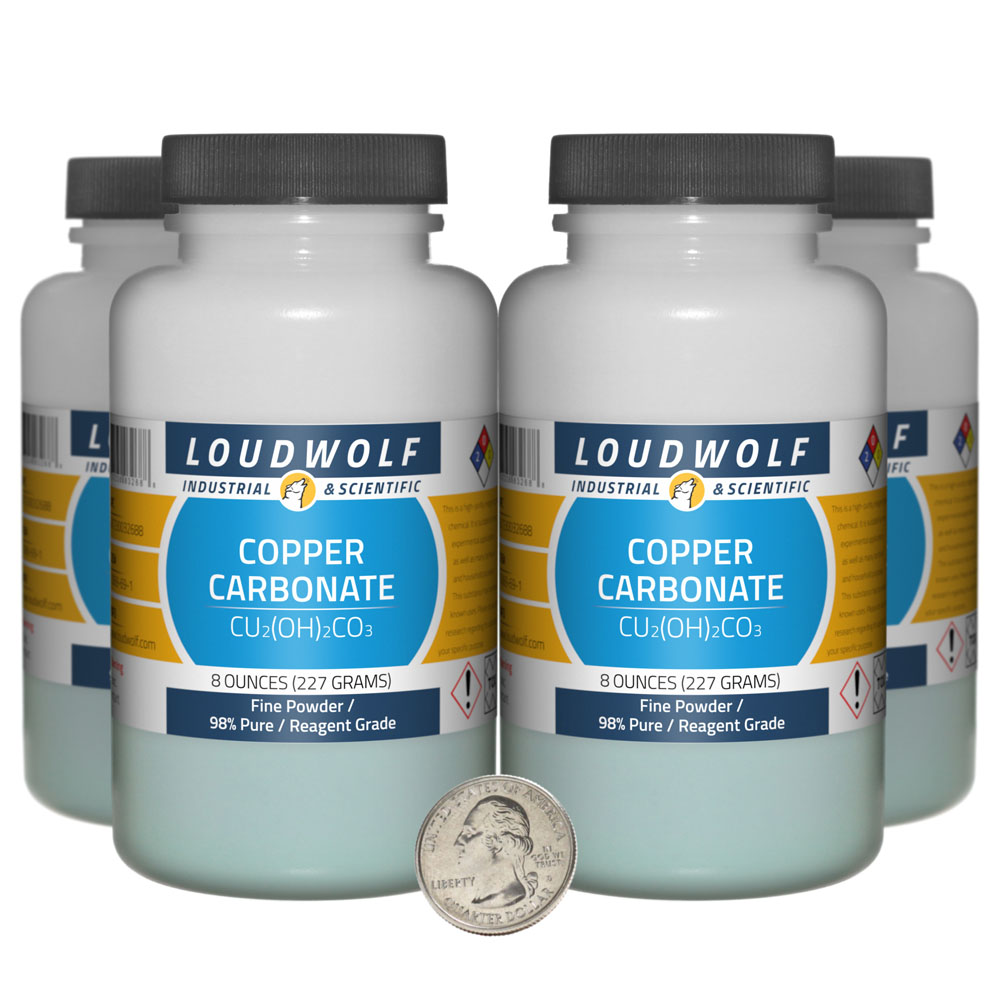 The item for sale is 2 Lb (32 Ounces) of Copper Carbonate (CU2(OH)2CO3). You get 4 bottles each containing 8 ounces of product.