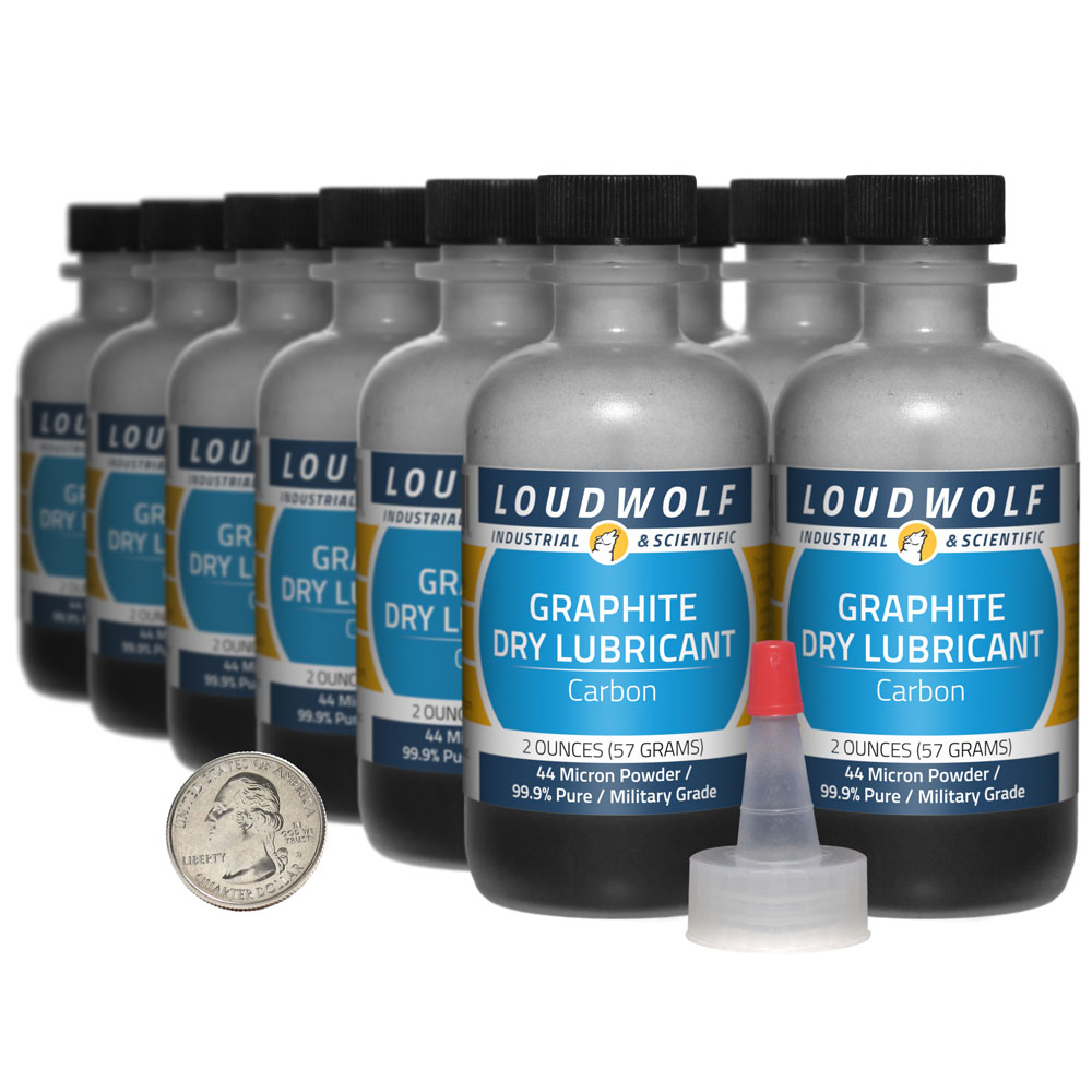 The item for sale is 1.5 Lb (24 Ounces) of Graphite (Carbon). You get 12 bottles each containing 2 ounces of product. Graphite is commonly used a dry lubricant where oils and greases are not ideal. This powder is incredibly fine with particles no larger than 44 Microns. For other dry lubricants, including Molybdenum Disulfide, check out our other listings. |