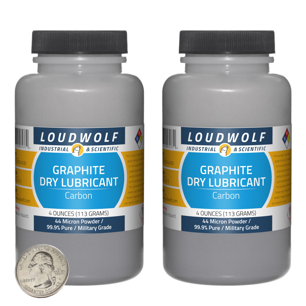 The item for sale is 8 Ounces (227 Grams) of Graphite (Carbon). You get 2 bottles each containing 4 ounces of product. Graphite is commonly used a dry lubricant where oils and greases are not ideal. This powder is incredibly fine with particles no larger than 44 Microns. For other dry lubricants, including Molybdenum Disulfide, check out our other listings. |