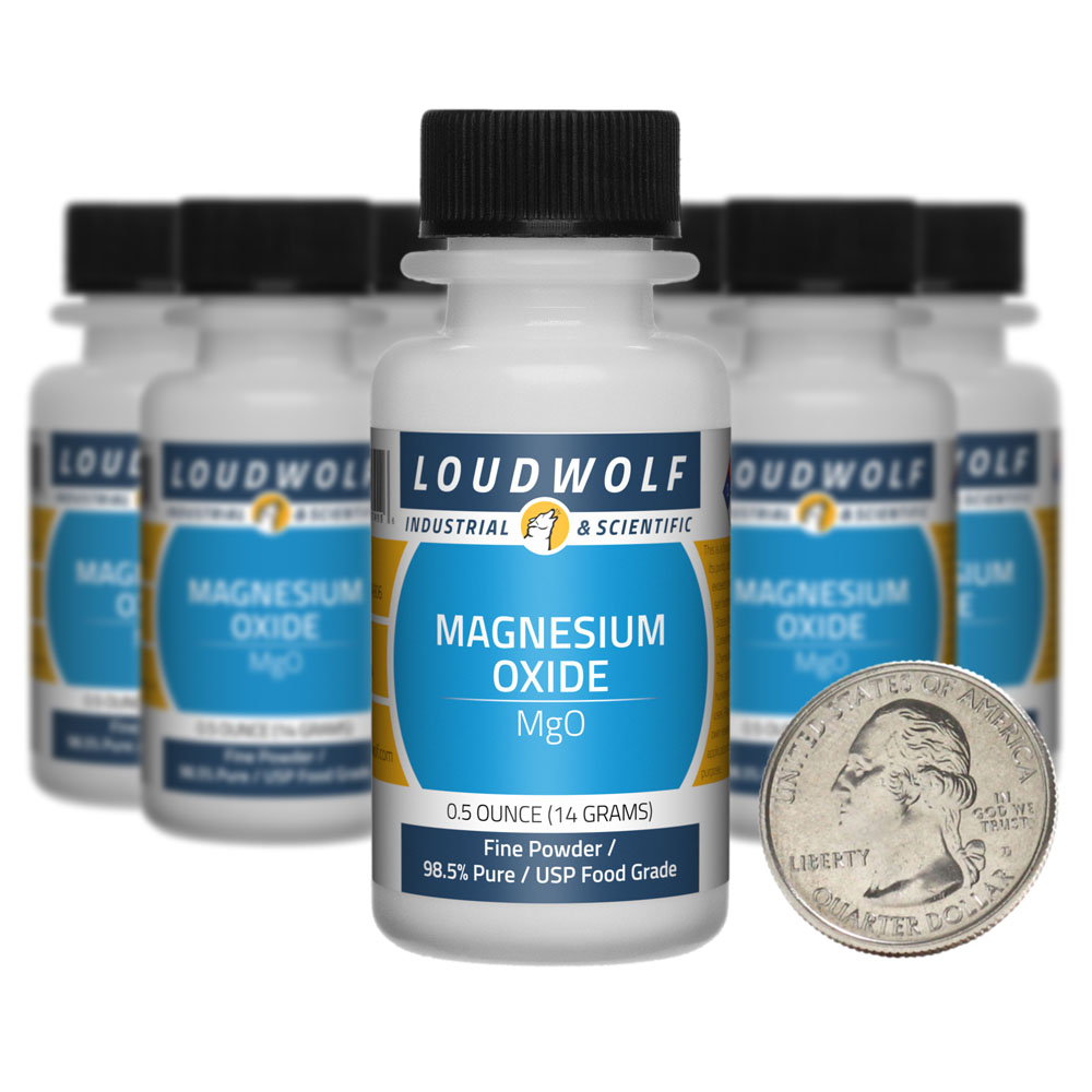 The item for sale is 5 Ounces (142 Grams) of Magnesium Oxide (MgO). You get 10 bottles each containing 0.5 ounces of product. Magnesium Oxide, also known as Magnesia, is a naturally occurring hygroscopic mineral. |