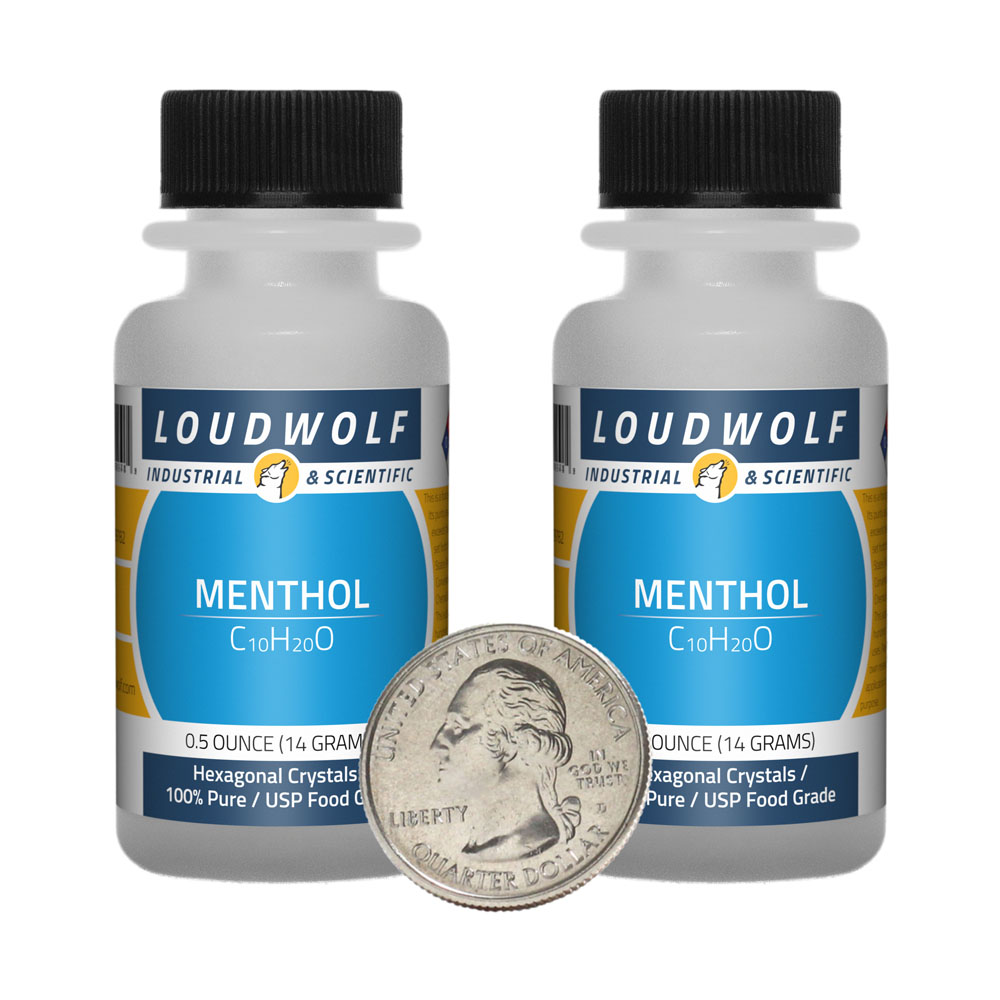 The item for sale is 1 Ounce (28 Grams) of Menthol (C10H20O). You get 2 bottles each containing 0.5 ounces of product. Menthol is also known as Menthol.