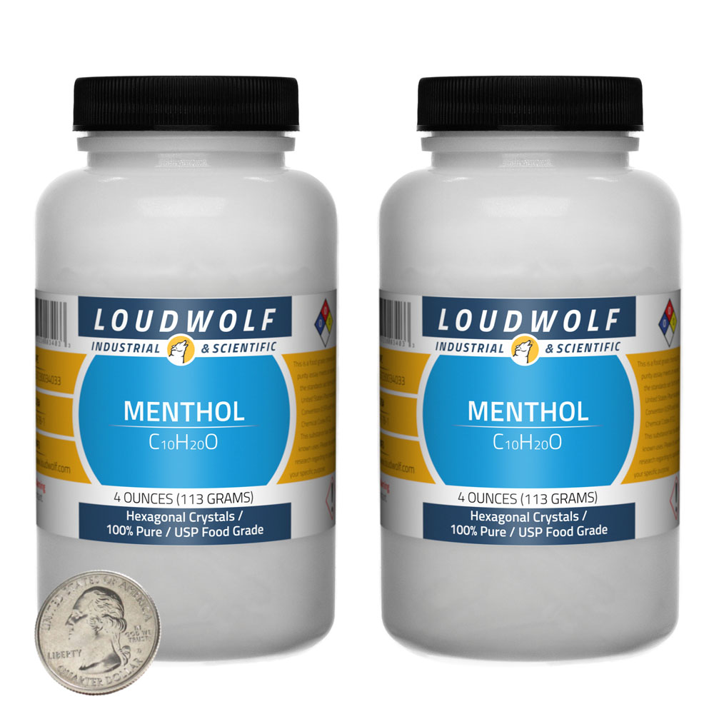 The item for sale is 8 Ounces (227 Grams) of Menthol (C10H20O). You get 2 bottles each containing 4 ounces of product. Menthol is also known as Menthol. |
