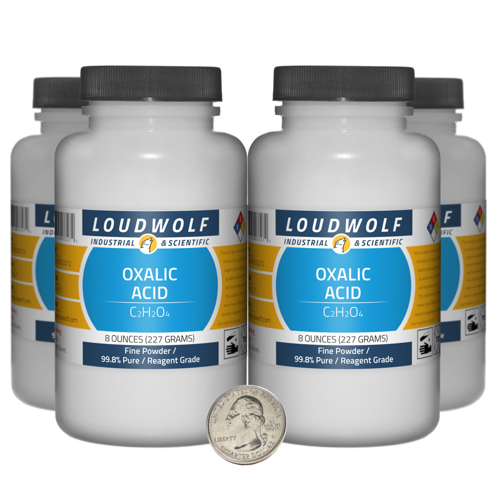 The item for sale is 2 Lb (32 Ounces) of Oxalic Acid (C2H2O4). You get 4 bottles each containing 8 ounces of product. Oxalic Acid dissolves easily in water and is commonly used as a chelating agent. Oxalic Acid is much stronger than Acetic Acid (Vinegar). For other chelating agents, including Disodium EDTA and Sodium Gluconate, check out our other listings. |