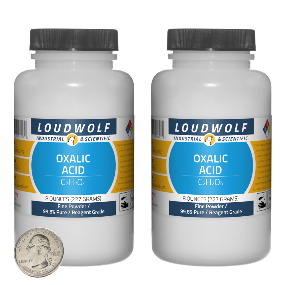 The item for sale is 1 Lb (16 Ounces) of Oxalic Acid (C2H2O4). You get 2 bottles each containing 8 ounces of product. Oxalic Acid dissolves easily in water and is commonly used as a chelating agent. Oxalic Acid is much stronger than Acetic Acid (Vinegar). For other chelating agents, including Disodium EDTA and Sodium Gluconate, check out our other listings. |