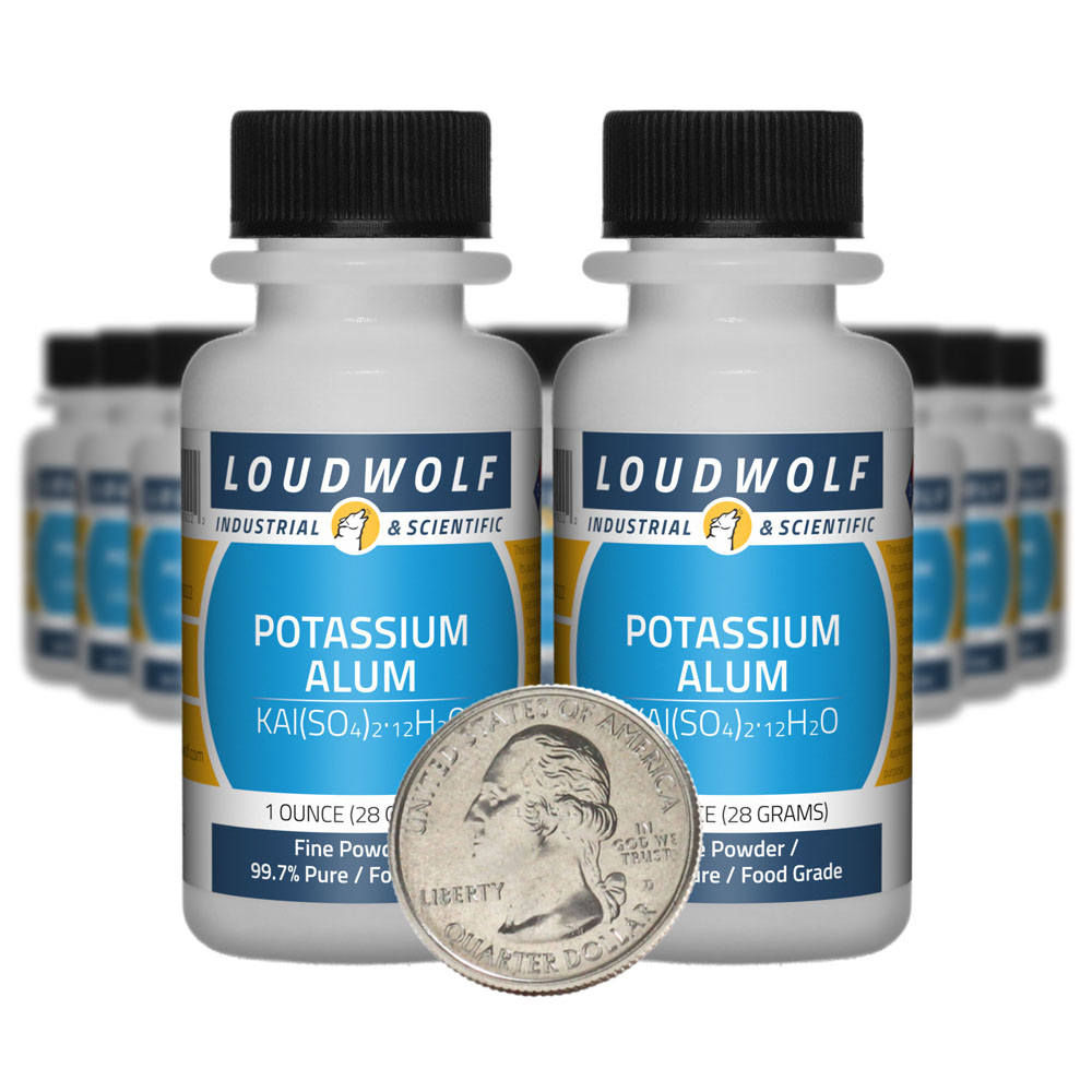 The item for sale is 1.3 Lb (20 Ounces) of Potassium Alum (KAl(SO4)2·12H2O). You get 20 bottles each containing 1 ounces of product. Potassium Alum is also known as Alum.