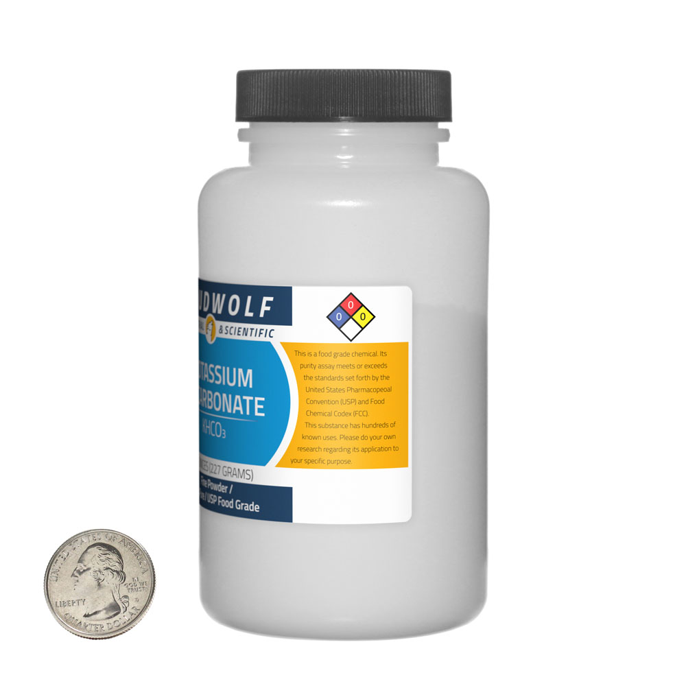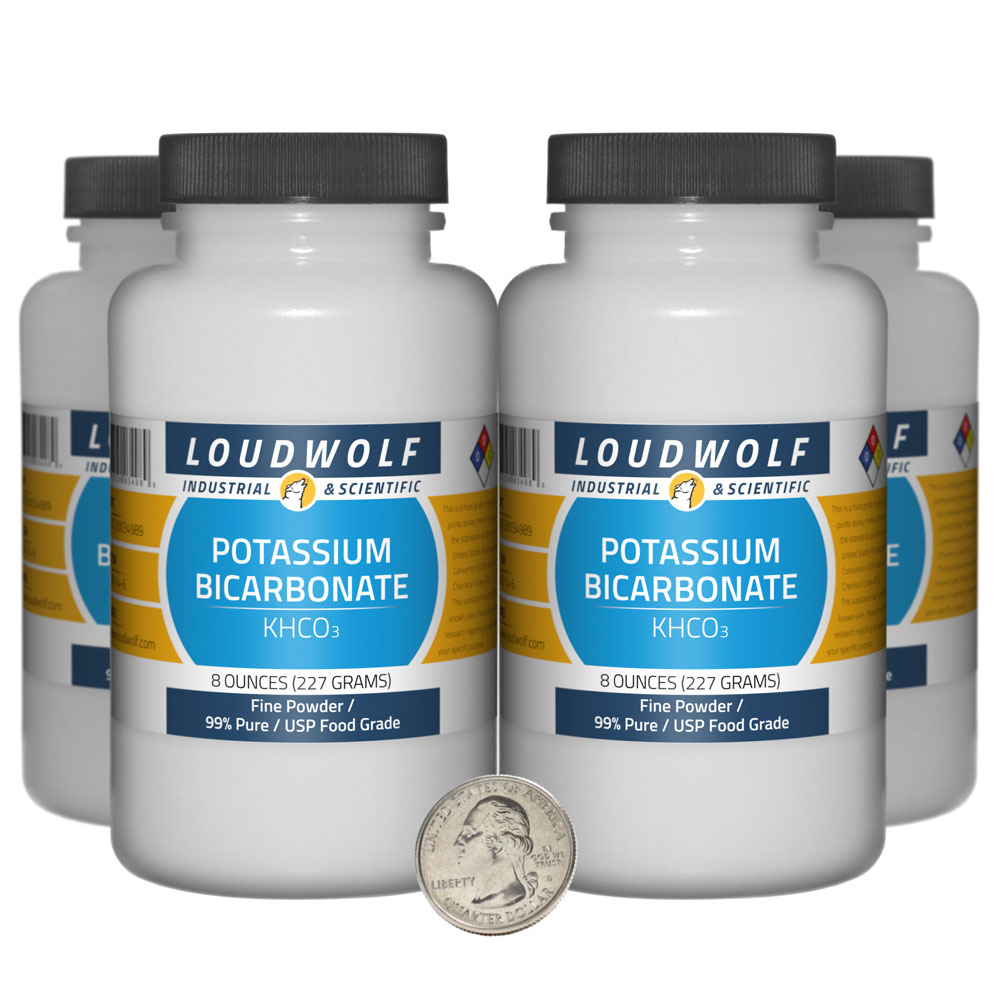 The item for sale is 2 Lb (32 Ounces) of Potassium Bicarbonate (KHCO3). You get 4 bottles each containing 8 ounces of product. Potassium Bicarbonate is commonly used as a source of carbon dioxide.
