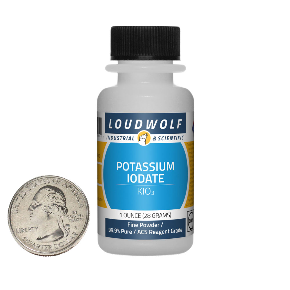 The item for sale is 1 Ounce (28 Grams) of Potassium Iodate (KIO3). Potassium Iodate is an ionic compound commonly used a source of elemental Iodine. For Potassium Iodide, check out our other listings. |