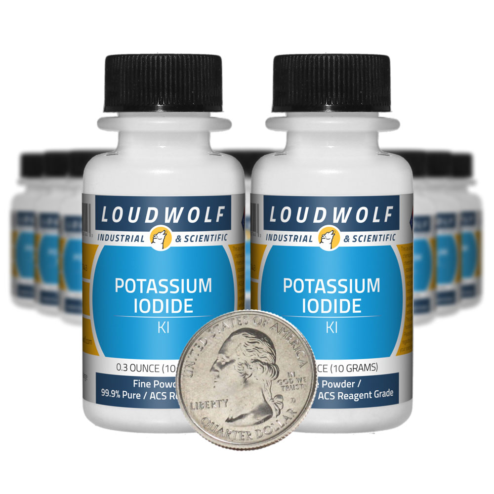The item for sale is 7 Ounces (198 Grams) of Potassium Iodide (KI). You get 20 bottles each containing 0.35 ounces of product. Potassium Iodide is an inorganic iodide compound that is less hygroscopic than Sodium Iodide. For Potassium Iodate, check out our other listings. |