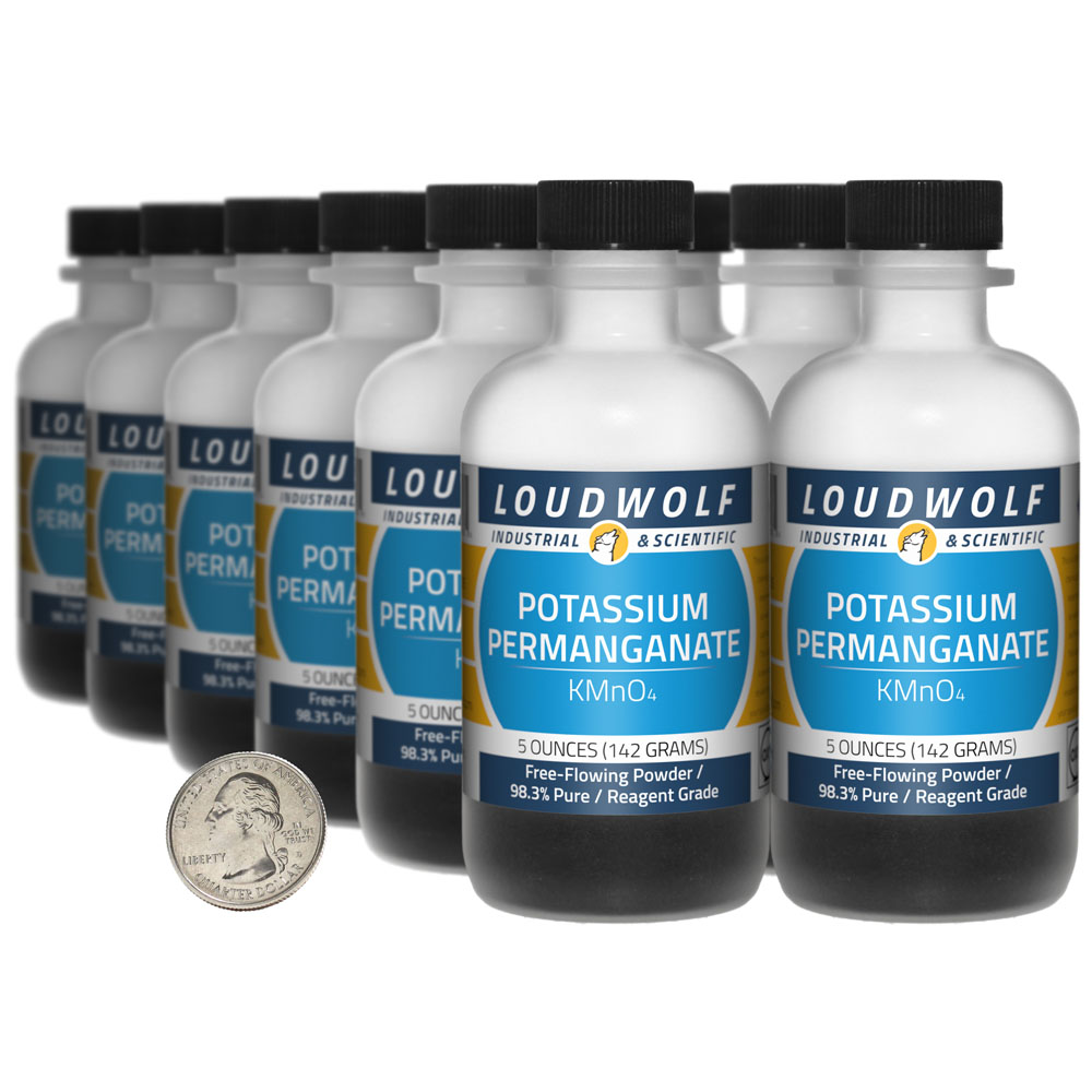 The item for sale is 3.8 Lb (60 Ounces) of Potassium Permanganate (KMnO4). You get 12 bottles each containing 5 ounces of product. Potassium Permanganate, also known as Permanganate of Potash, is a powerful oxidizer that does not generate any toxic byproducts.