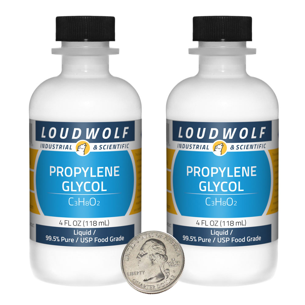 The item for sale is 8 Fluid Oz (237 mL) of Propylene Glycol (C3H8O2). You get 2 bottles each containing 4 ounces of product. Propylene Glycol is a colorless, odorless diol that is miscible with water and a broad range of solvents. For polyethylene glycol or glycerin, check out our other listings. |
