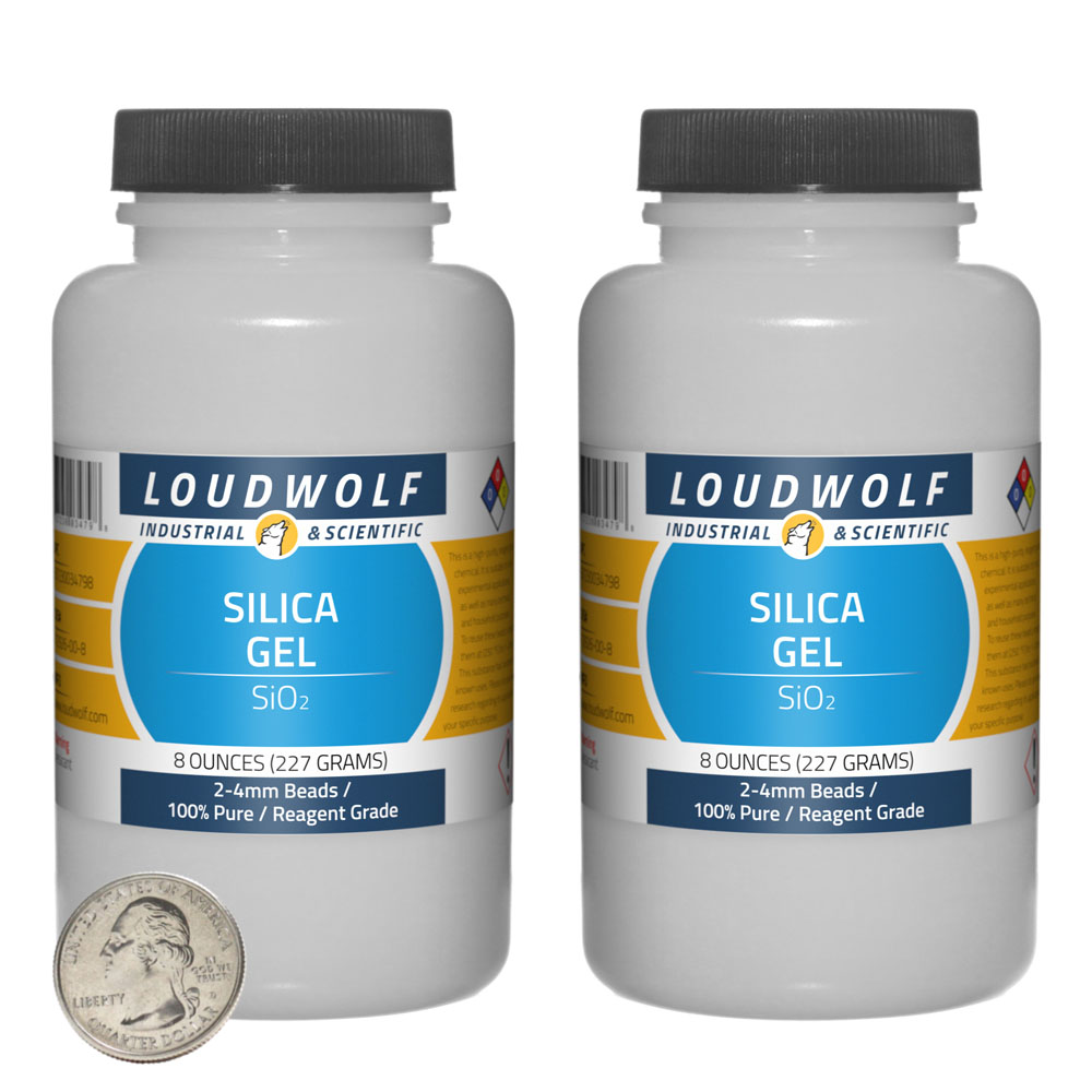 The item for sale is 1 Lb (16 Ounces) of Silica Gel (SiO2). You get 2 bottles each containing 8 ounces of product. Silica Gel is an effective desiccant that absorbs moisture from the air around it due to its nano-porous silica micro-structure, Silica Gel. This Silica Gel is non-indicating, meaning the beads are colorless and clear. The beads are 2-4 mm in diameter (roughly 6 mesh) and have the following range of absorption capacity: 11.2% at 20% Relative Humidity, 23% at 50% Relative Humidity, and 32% at 90% Relative Humidity. To reuse these beads, simply heat them at 120 °C (250 °F) for 1–2 hours. For Sodium Silicate (Waterglass), check out our other listings. |