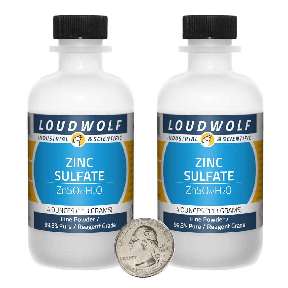 The item for sale is 8 Ounces (227 Grams) of Zinc Sulfate (ZnSO4·H2O). You get 2 bottles each containing 4 ounces of product. Zinc Sulfate is also known as White Vitriol. |